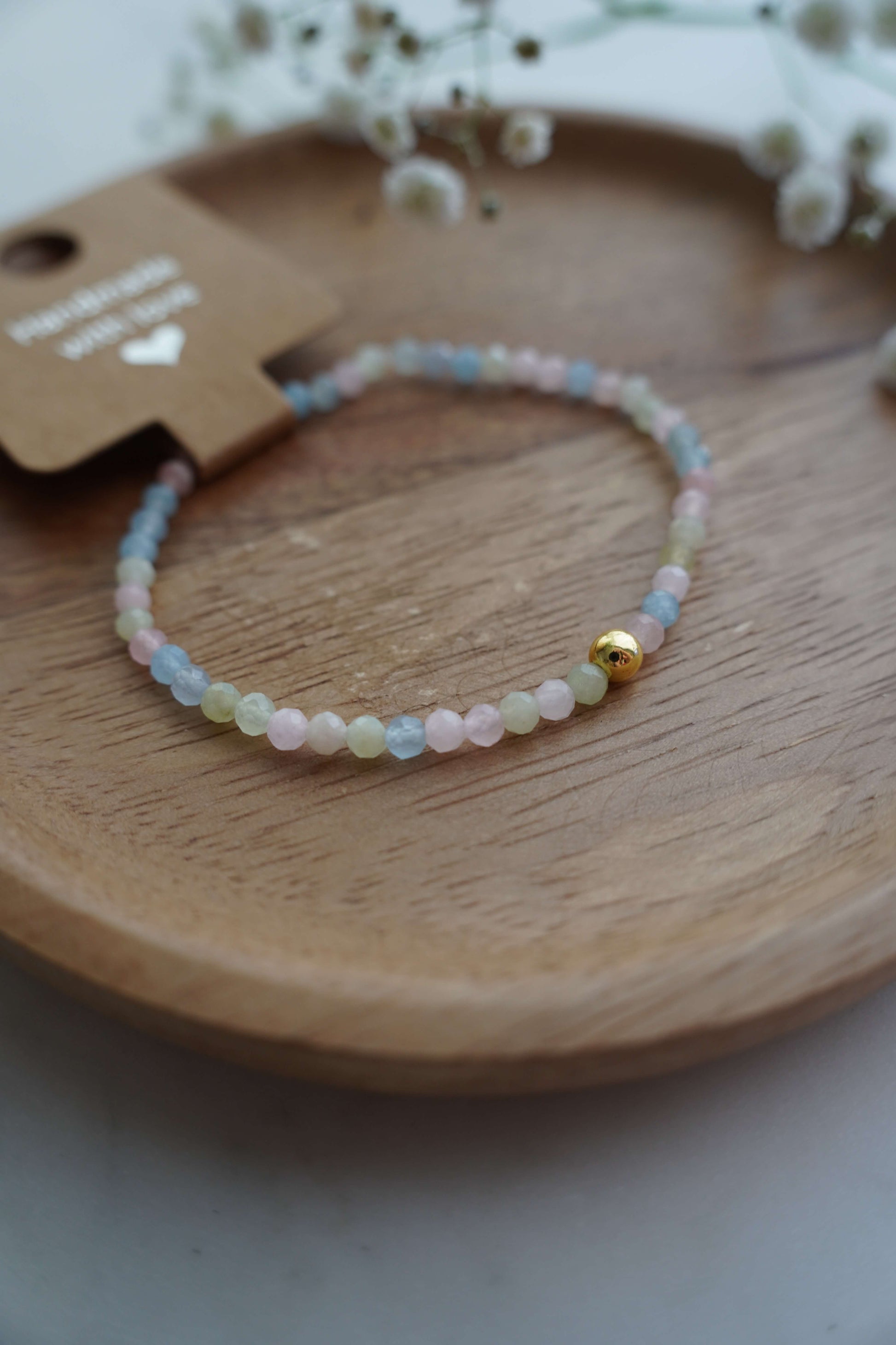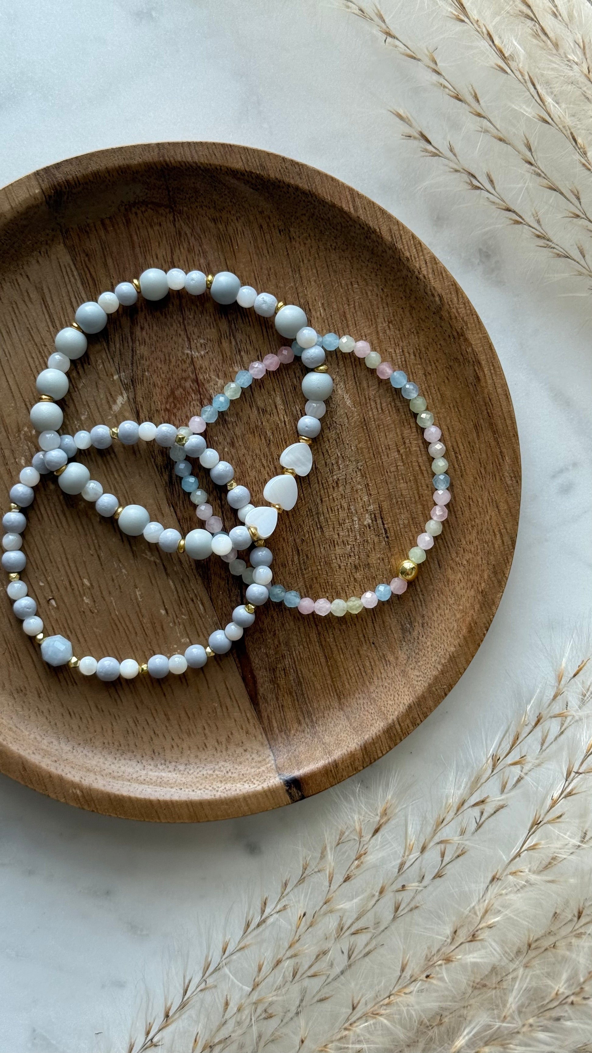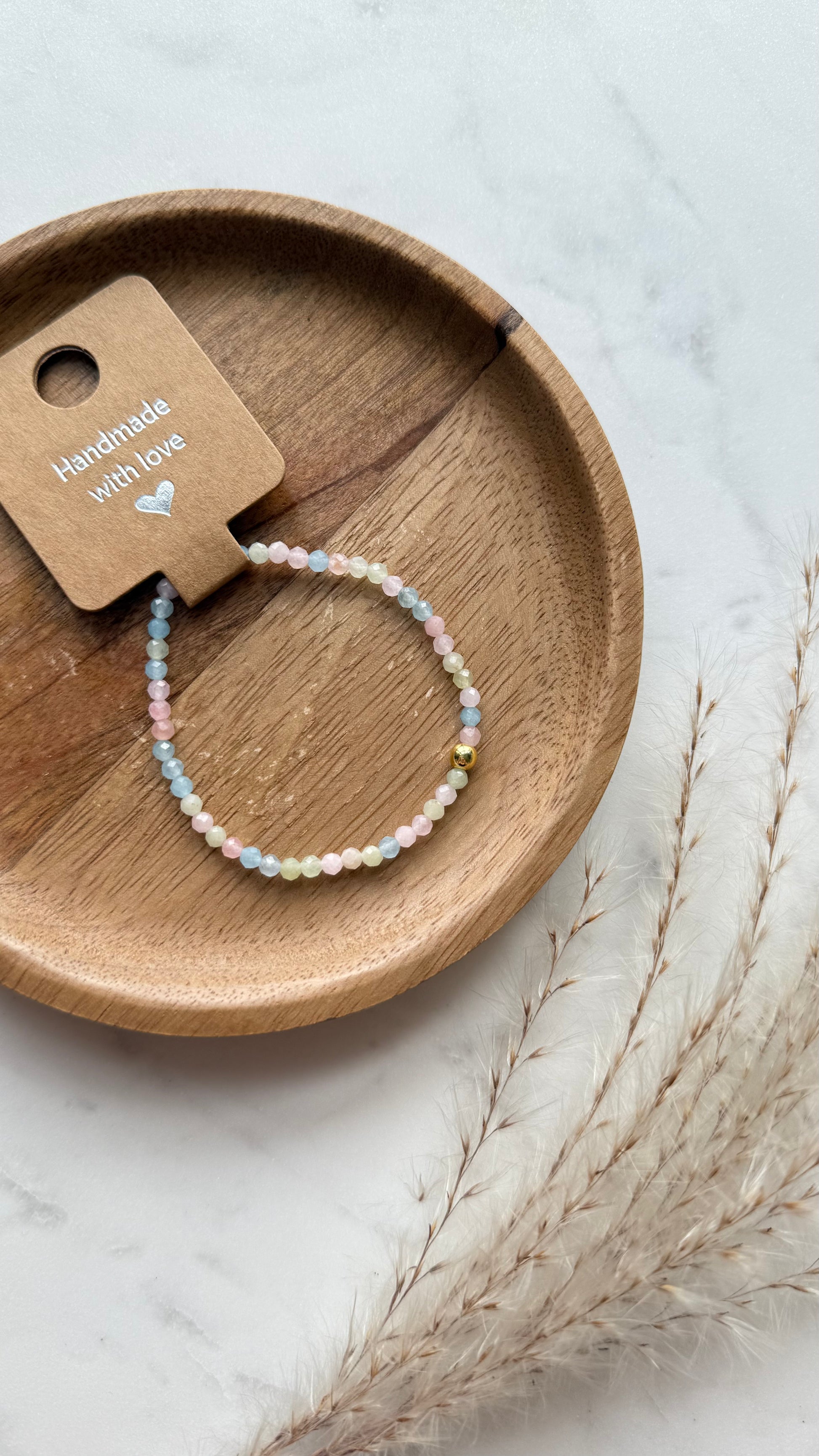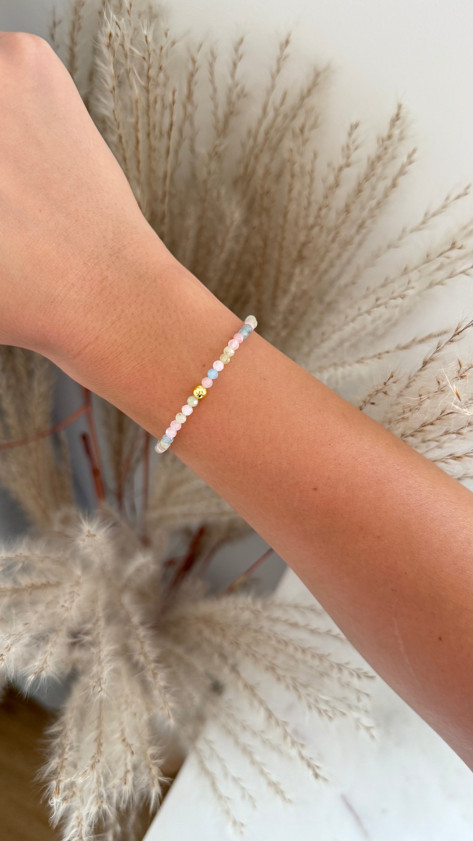 Zainspirowana dzieciństwem, marzeniami i bajkowymi kolorami – ta pastelowa bransoletka to podróż do miękkości i spokoju. Idealna do letnich sukienek, codziennych spacerów i chwil dla siebie.